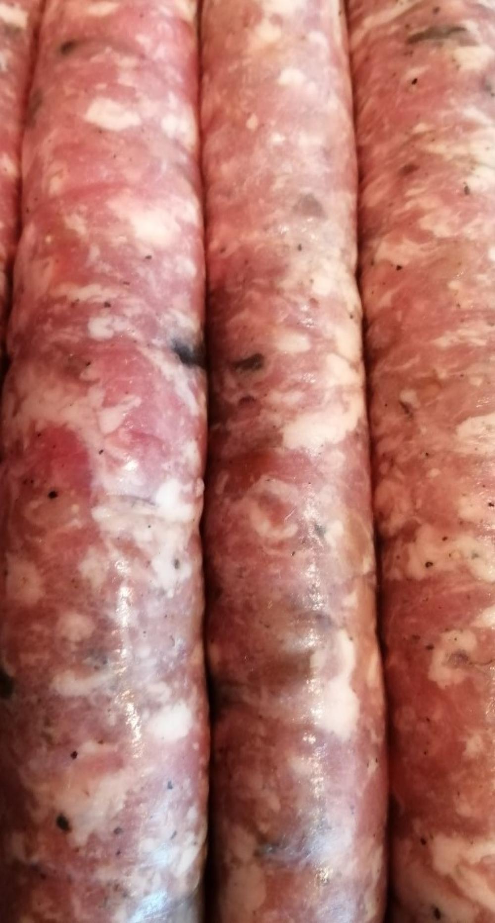 Botifarra de Bolets.Ingredients:porc,pebre blanc i negre,additiu salsitxa,barreja de bolets i sal.