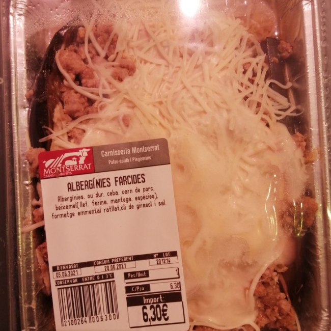 Albergínies farcides de carn. Ingredients: vedella i porc,albe...
