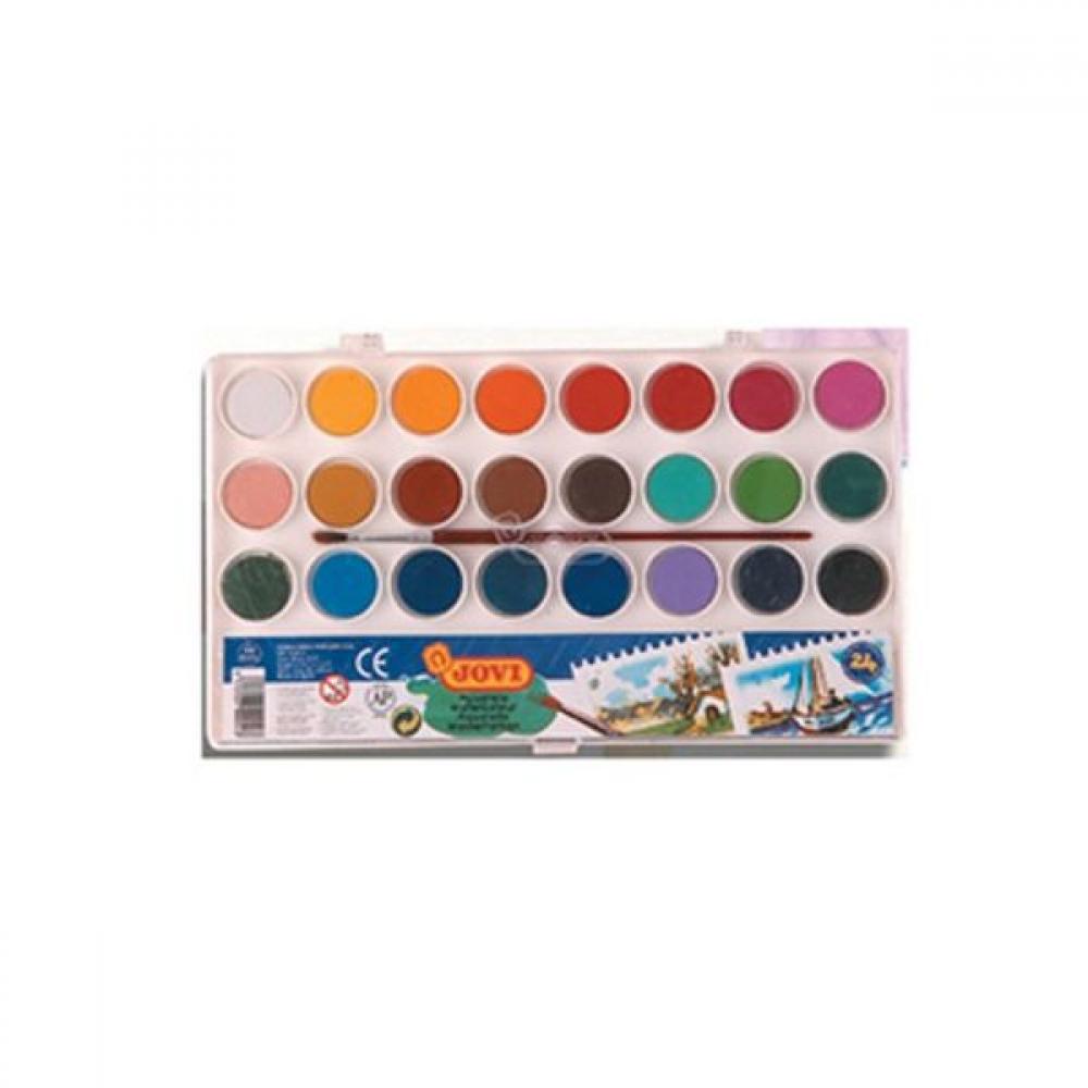 24 acuarelas en pastilla diluibles al agua. Secan rápido, proporcionan un buen rendimiento y no hacen burbujas sobre el papel. Incluye pincel y estuche, que se puede usar como paleta de acuarela A partir de 3 años