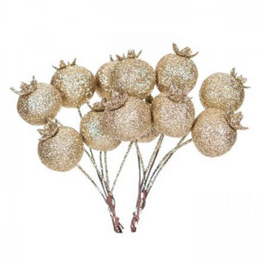 GOLD GLITTER HOLLY BERRIES 1,8 CM, 12 PCS Ref. DPZA-026
