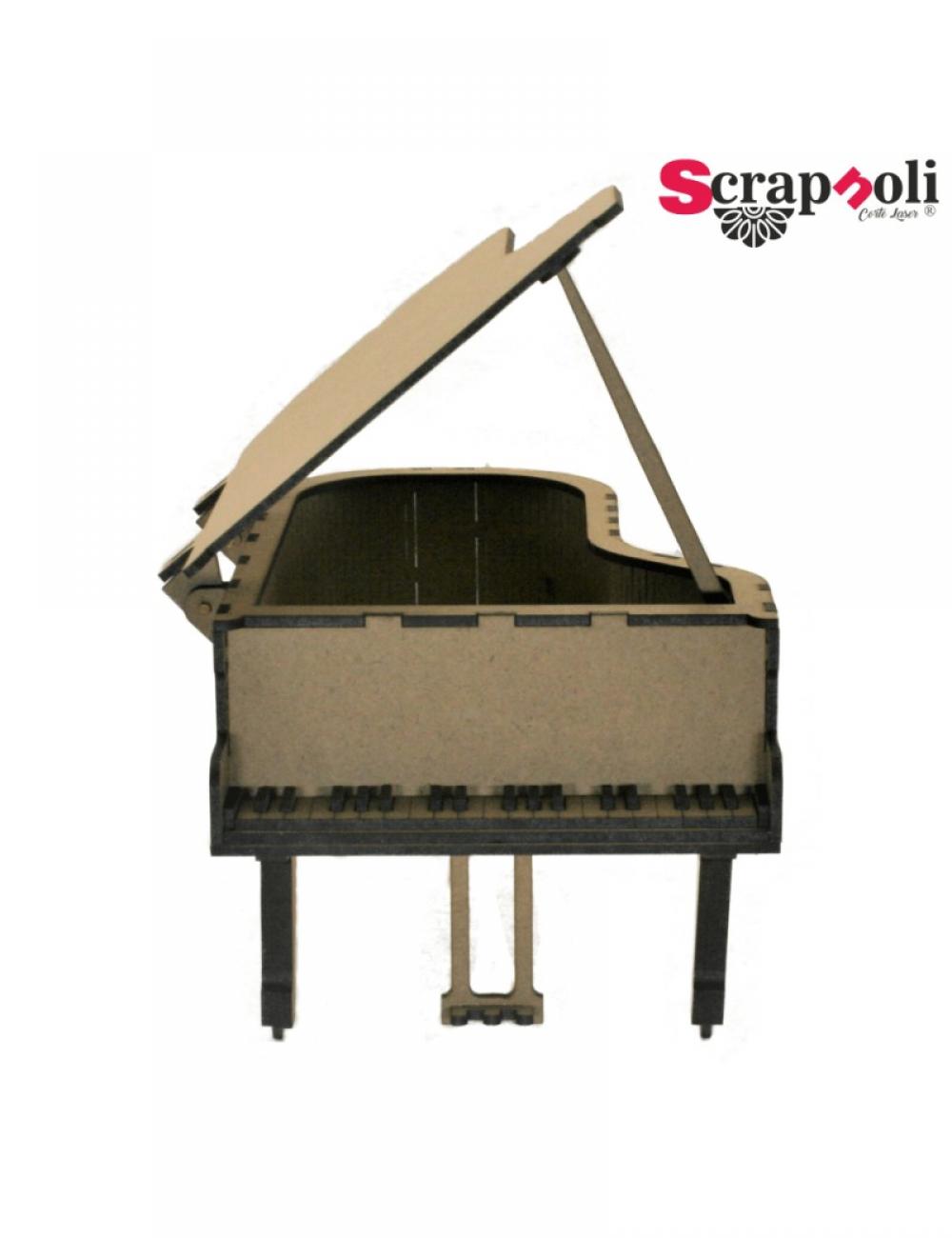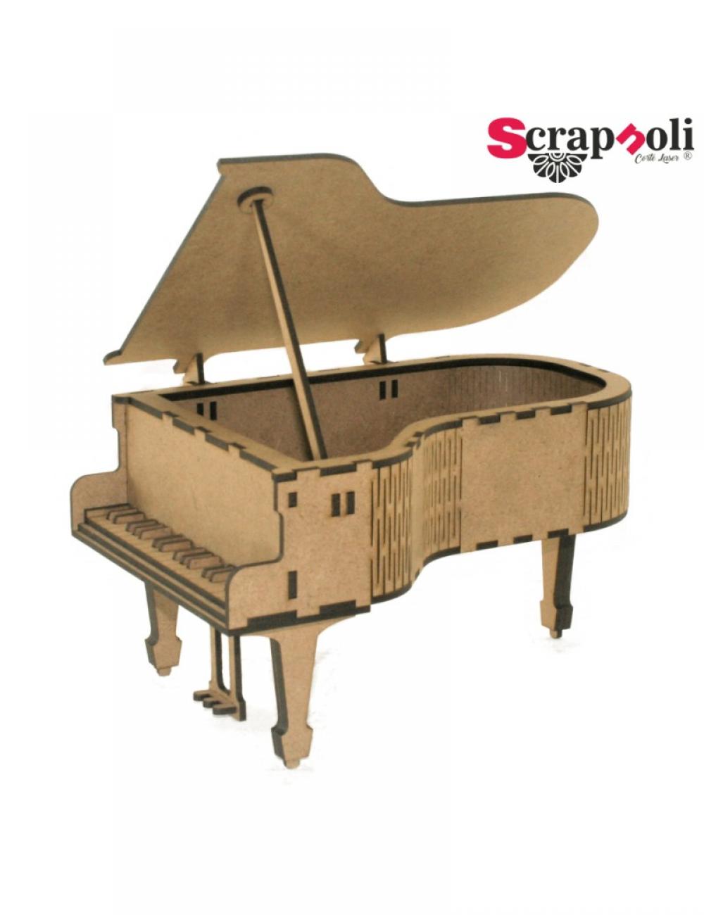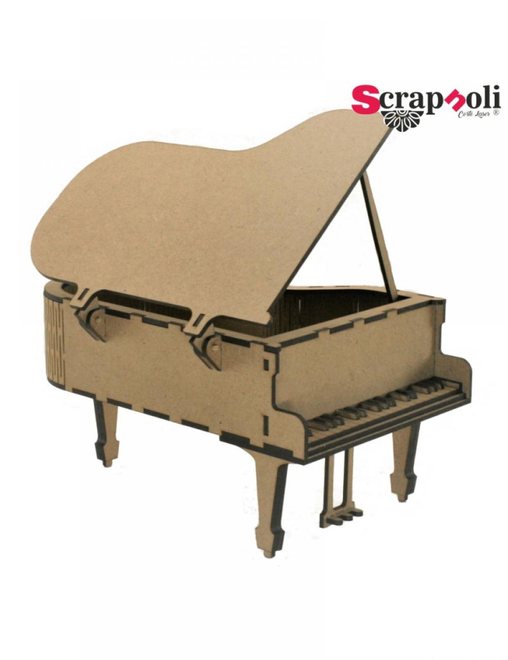 Medidas piano alto 13,5 cm ancho 16 cm fondo 23 cm Piano de cola con una tapa abisagrada para poder abrir y cerrar a modo de joyero. Ideal para decorar con la técnica que más te guste. Este producto se entrega desmontado. Se compone de 41 piezas. Material: madera DM de 3mm.