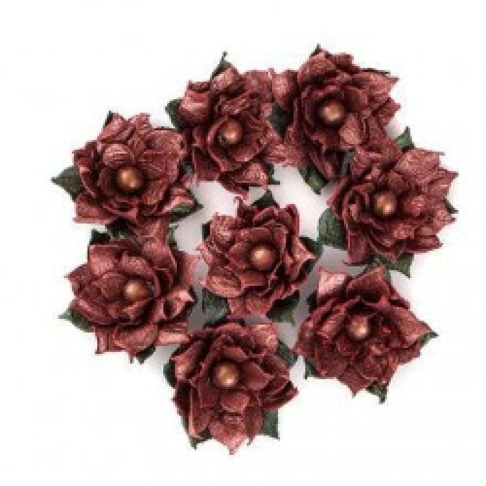 POINSETTIA PAPER FLOWERS, 8 PCS, METALLIC RED